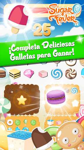 Sugar Fever, un divertido juego que pondrá a prueba tus reflejos y velocidad. Une caramelos, haz increíbles combos, suma puntos y completa las misiones para convertirte en el mejor jugador de Sugar Fever del mundo en nuestro ranking mundial. Decenas de misiones te esperan. ¡Desafía a tus amigos y demuéstrales que eres el mejor!