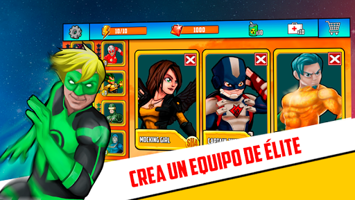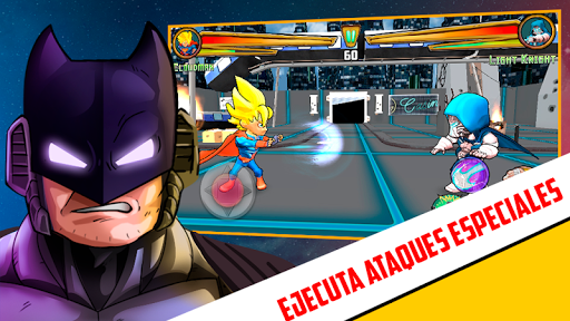 Lucha y gana batallas para coleccionar nuevos súper héroes y tener mas luchadores donde elegir para ganar lo combates finales.Pelea en la liga de superhéroes y gana capitulo a capitulo impartiendo justicia contra malvados villanos que intentarán dejarte KO, usa diferentes combos de puñetazos y patadas para conquistar el universo, recupera salud y energía para poder usar el combo final y acabar campeón de la liga de superhéroes.