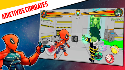 - Combate en diferente escenarios ¡Pelea con superhéroes para ganar!