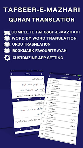 Tafsir E Mazhari - Quran Traducción y Tafseer de Qazi Sana Ullah Pani Patti Traducido en Urdu por Maulana Syed Abdur Daim Al-Jalali.Esta aplicación también incluye la traducción de urdu de Corán escrito por Fateh Muhammad Jalandhary.