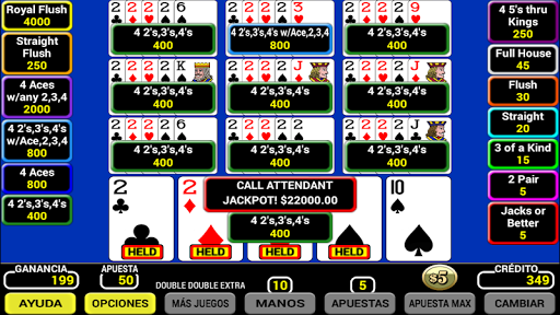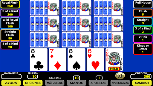 A diferencia de las máquinas tragaperras, video poker le permite al jugador utilizar las habilidades para vencer a la casa. Juega a este juego tan popular como en Las Vegas.