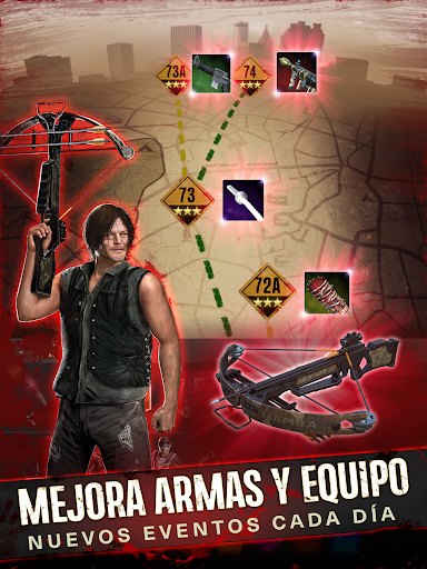 RECOGE cientos de armas poderosas, desde la ballesta de Daryl hasta la katana de Michonne, y luego mejora tu equipamiento para aumentar el poder de tus supervivientes.