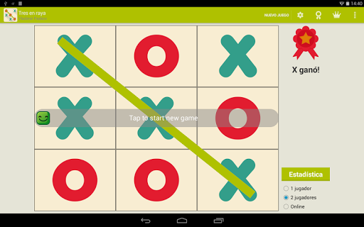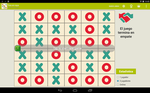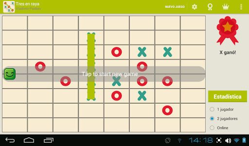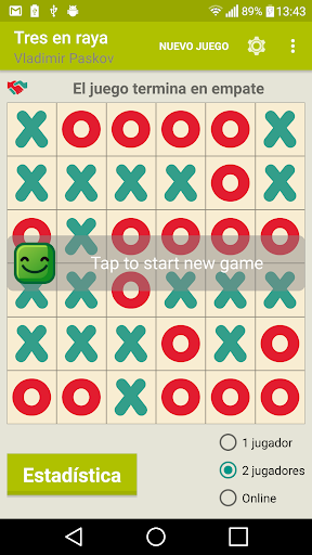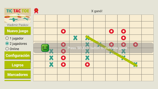 tic-tac-toe es un juego para dos jugadores, X y O, que se turnan para marcar los espacios en una cuadrícula de 3 × 3.El jugador que logra colocar tres marcas respectivas en una fila horizontal, vertical o diagonal gana el juego.Si la cuadrícula está llena y no hay ganador, el juego termina en un empate.