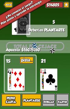 Juega al mejor Blackjack completo y totalmente gratis. Disfruta de la experiencia pura del juego, sin añadidos ni complicaciones, en cualquier momento y lugar. Eres nuevo al Blackjack? ¡Sin problema! Usa el sistema de pistas para aprender y refinar tu estrategia: también tienes una completa guía para ponerte en marcha. ¡Blackjack Total es la mejor manera de iniciarte en el juego sin arriesgar!