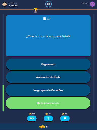 ¡Pon a prueba tu conocimiento general o juega en tu categoría preferida: geografía, entretenimiento, historia, arte y literatura, ciencia y naturaleza, deporte, música, películas y fútbol! ¡Tu eliges!