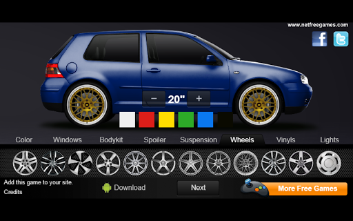 En este juego, tu puedes personalizar un Golfe 4, cambiando las partes del coche, como body kits, spoilers, neon, colores, suspension para rebajar la carrocería, cambiar llantas y otros accesorios.