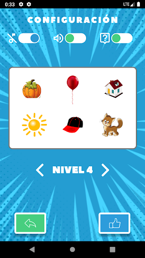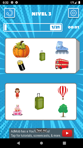 Cada siguiente nivel es más difícil porque contiene más imágenes en una tarjeta. Puede encontrar la respuesta por su cuenta o puede mirar un consejo.