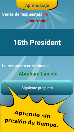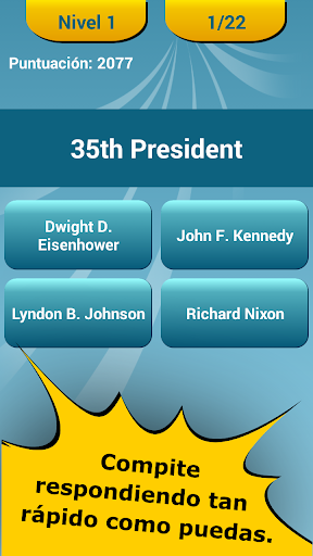 El "Quiz : Presidentes de los EEUU" te ayudará a parender información importante sobre los presidentes.