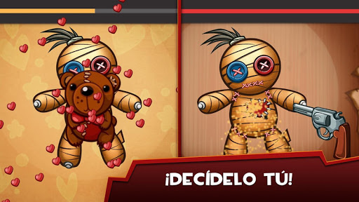 En otros juegos de muñecas vudú reales simplemente matas a la muñeca con diferentes torturas y armas. Pero en este juego de alivio del estrés también puedes mostrar tu amor a la negra criatura mágica. Esto difiere al juego Voodoo Magic de otros juegos de muñecas vudú real y juegos de dolor.