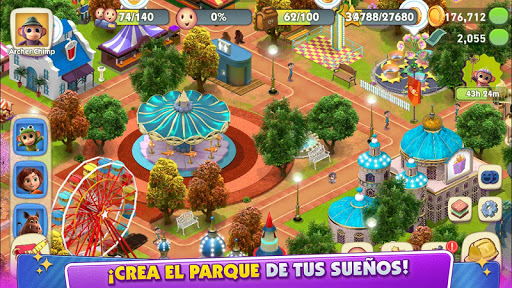 ¡Crea el parque de atracciones de tus sueños con El Parque Mágico: atracciones mágicas! Construye impresionantes montañas rusas, fabrica objetos, colecciona Wonderchimps, decora tu parque y administra a tus visitantes para convertirte en un verdadero magnate. ¿Alguna vez te has preguntado cómo sería si el parque de atracciones de tus sueños se hiciera realidad? Únete a los personajes de la película en una increíble aventura de construcción de parques de atracciones. ¿Puedes devolverle la vida a El Parque Mágico? ¡Empieza desde cero y conviértete en un héroe!