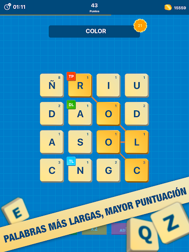Mientras mayor sea la palabra que encuentras, más puntos te ganarás. Además de eso, puedes utilizar las letras con bono y añadirle algunos powerups a tu juego para ¡llegar cada vez más lejos!