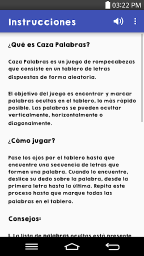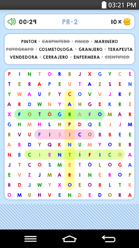 • Puede visualizar consejos de las palabras ocultas. Pero puedes intentar resolver el tablero sin ellos;