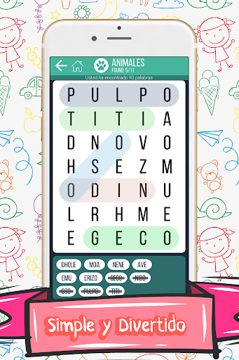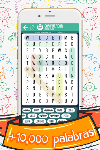 El rompecabezas de la búsqueda de la palabra le trae varias categorías y es libre.