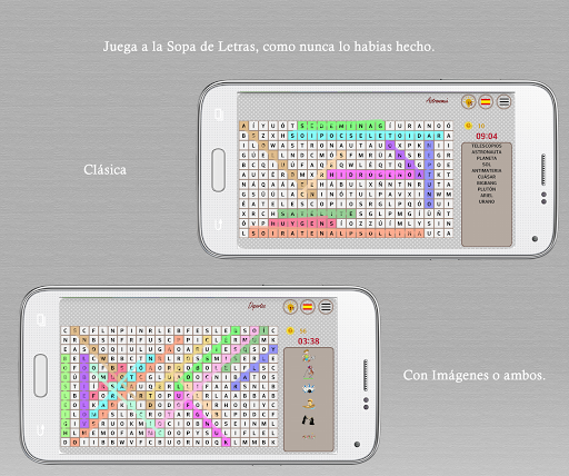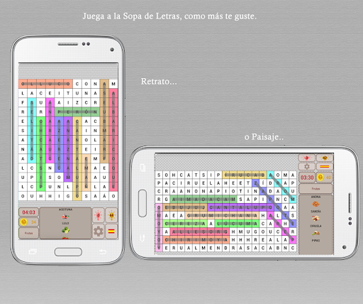 - Puedes jugar en modo paisaje o retrato , dos formas de jugar al gusto de tu juego de sopa de letras.