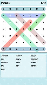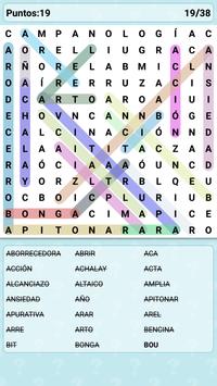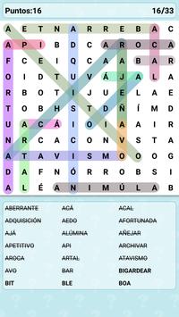Este juego Sopa de Letras (también conocido como Word Search, Word Find, Word Seek o Word Sleuth) cuenta con más de 16 000 palabras distribuidas en 11 tamaños de tablero (5x5, 6x6, ..., 15x15).