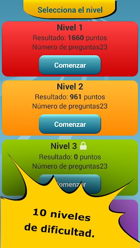- en cada nivel hay 23 banderas de países (¡un total de 230 banderas a adivinar!)