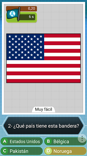- BANDERAS: Juego en modo de competición: En esta modalidad, debes identificar correctamente al pais al que pertenecen las banderas pero atención, porque a medida que vayas respondiendo correctamente, la dificultad irá en aumento (hay cinco niveles), ¿ que nota obtendrás ?