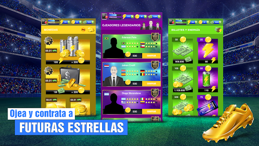 Entrenar y jugar partidos de fútbol para ganar dinero como manager de fútbol, hacer dinero con tu equipo de ojeadores legendarios que buscarán a los mejores jugadores de fútbol del mundo del deporte, además de hacerte ganar muchos billetes a través de tus futbolistas representados.