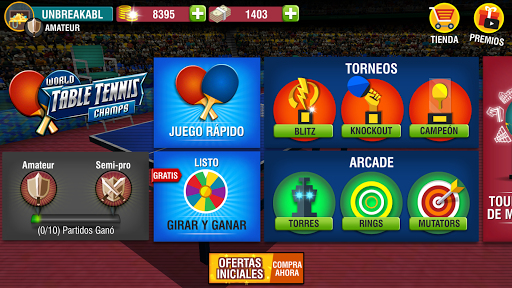 • ¡Juega 3 emocionantes torneos en estilo eliminatorio con recompensas exclusivas y conviértete en el campeón de ping pong!