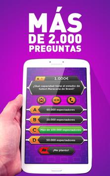 Juega gratis a ¿Desea ser Millonario? en español y demuestra al mundo quien es el más culto. Esta app es un juego de preguntas y respuestas en español inspirado en el popular programa de la tele quien quiere ser millonario. ¡Totalmente gratis! El concurso contiene más de 2000 cuestiones de cultura general y dos modos de juego en donde podrás testear la inteligencia que posees. ¡Lo que vas a aprender!