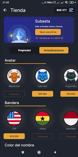 ¡Gaste su riqueza del juego en jets privados y elegantes joyas! Participe en subastas o compre en la tienda de la aplicación de Forex Royale. ¡Compre artículos únicos y llene de lujo su perfil!