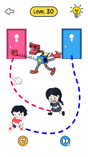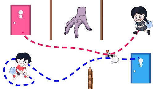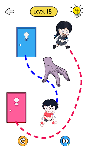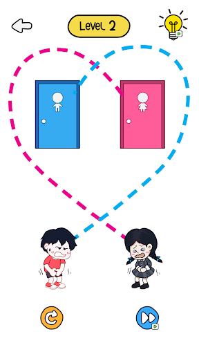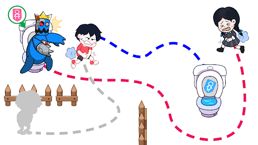 Juega el sorteo para el inodoro, tienes el desafío de encontrar la forma de llegar al baño.Dibuja una línea para conectar al niño y la niña al baño, pero recuerde ser lo más rápido posible mientras esquivan todos los obstáculos en el camino al baño.