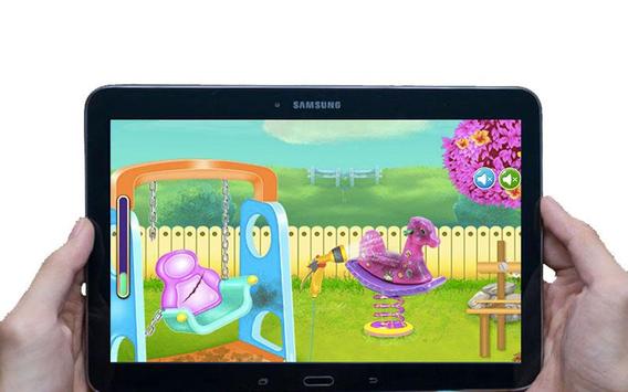 Todo es diversión y juegos hasta que el parque ya no sea un lugar seguro porque todo está destruido. Pero ya no, con este juego de limpieza, estarás arreglando y lavando el área de juegos para que los niños puedan entretenerse con los juguetes como el columpio, el caballo o incluso el tobogán para niños. Una vez que hayas limpiado el lugar repara todo lo roto, el banco para los padres. 😍