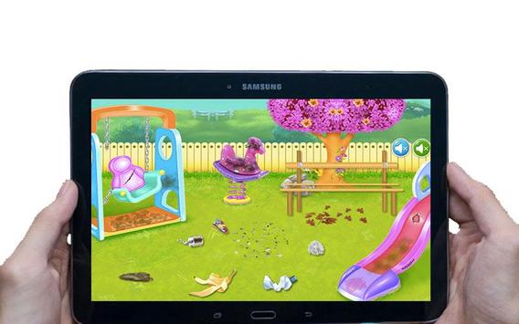 Es fácil jugar con las cosas y dejarlas rotas y quizás no funcionar, pero si eres un niño responsable que ama ayudar a los demás y siempre está en una etapa constante de aprendizaje de cosas interesantes, es posible que desees ver este juego de limpieza. No solo tienes la gran oportunidad de aprender cómo se hacen las cosas aquí, sino que también descubrirás cómo solucionar los posibles problemas en la vida real. Entonces, comience este divertido juego de niños con el desorden que va a ser atendido por usted. El jardín nunca se vio tan devastado y, como quiere que todos vuelvan a ser un parque funcional, comenzará a recoger la basura que está esparcida por todas partes. Colóquelo en el bote de basura y muévase a la parte donde quita las manchas de suciedad que se encuentran en los juguetes. El caballo necesita una rehabilitación completa y siguiendo las instrucciones que se le van a dar. El mate del columpio también necesita limpieza, frótelo hasta que vuelva a ser naranja. La diapositiva también necesitará un poco de limpieza, use las herramientas dadas y haga que todo brille. En el suelo se extienden algunas hojas que necesitan ser recogidas. Cuando haya terminado con la eliminación de la suciedad del suelo, simplemente puede ir más lejos a la etapa de fijación. Esto implicará mirar más de cerca cada elemento del parque que necesite su atención. Arregle el columpio para que los niños estén seguros cuando se diviertan, mire la diapositiva para que esté todo listo para usar. El banco para los padres o incluso los niños necesita ser completamente rehabilitado. Sigue las tareas indicadas y terminarás el jardín del parque en poco tiempo. 😍