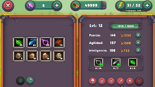 Toque los árboles lo más rápido posible para cortarlos y distribuya la recompensa recibida en la ventana de actualización. Actualiza a tu héroe a tu discreción. Conocerás a guerreros amistosos que te llevarán a la mazmorra de artesanía, o te darán un valioso botín para un pasaje más exitoso.