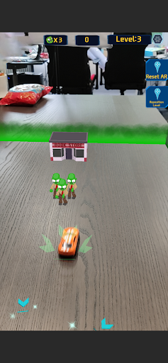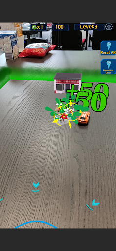 This is an Augmented Reality game. You need a real toy car to play this game. Your car is detected as being part of the game as long as it is visible to the camera. This allows you to use your real toy car to play in a virtual environment.