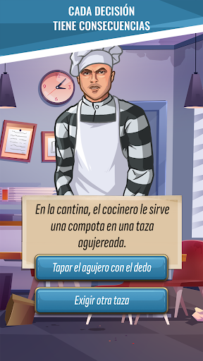 Al inicio obtienes un personaje, un crimen y una sentencia en prisión. Tu deber es tomar las decisiones correctas para sobrevivir en prisión. ¿Estás listo? Abastecete de latas y antiséptico y adelante.