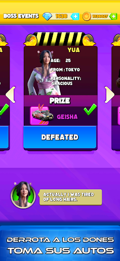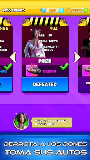 De Nueva York a Moscú, de Tokio a Londres, decenas de jefes diferentes te esperan en sus regiones. Yua es un genio de la tecnología, mientras que Bebé Bill es del pantalleo. ¿Podrás vencer a estos duros oponentes? Derrota a tus contrincantes uno a uno, quédate con sus autos, amplía tu colección y desafía a aún más dones. Todos los autos te están esperando, captúralos.