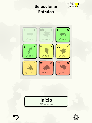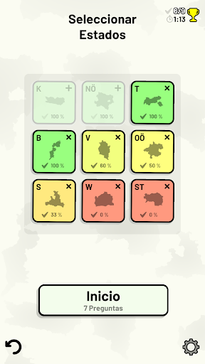 Los cuestionarios personalizables le permiten elegir qué estados y temas probar. Sus resultados previos para cada estado se muestran para resaltar su progreso en cada tema.