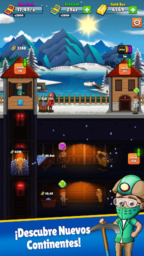 ¡Incluso si estás desconectado en este juego de minería inactivo, tus mineros seguirán cavando y seguirás ganando dinero en efectivo y oro!