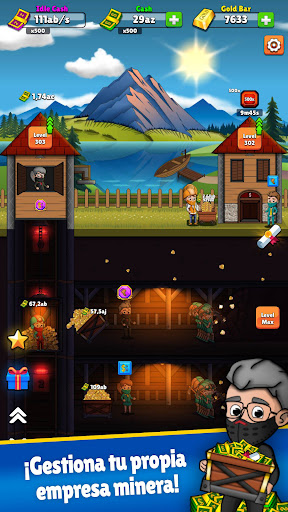 ¡Conviértase en el magnate de la minería de oro, expanda su imperio, aumente su efectivo y sus ganancias en efectivo inactivas en este juego de simulador de empresario inactivo donde puede ganar dinero comprando muchos pozos de minas! ¡Conviértete en el minero de oro más rico del mundo!