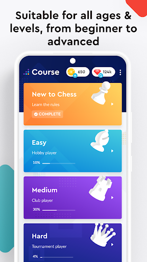 - Juegos emocionantes y emocionantes diseñados para reforzar su aprendizaje de ajedrez.