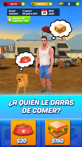 Empezarás sin dinero en tus bolsillos y viviendo en un albergue público como un vagabundo pero si tomas las decisiones correctas en este simulador de vida podrás conseguir el dinero suficiente para crear tu primer negocio como empresario de éxito. Trabaja duro cada día en tu negocio y el éxito formará parte de tu vida. Te convertirás en un empresario multimillonario y tendrás suficiente dinero para incrementar tus ingresos, invirtiendo en el mercado financiero o creando nuevos negocios exitosos.