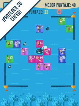Los humanos se están acercando a la cueva. ¡Deslice su dedo y suelte para ahuyentar a los humanos que se acercan! Según aumenta la fortaleza de los humanos, construya una armada de tiburones para vencerlos.