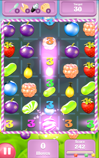2: Haga coincidir la fruta hasta que la Transparencia del tablero, la fruta de bayas, aparecerá.