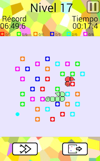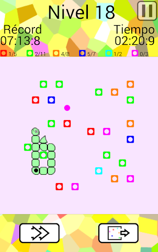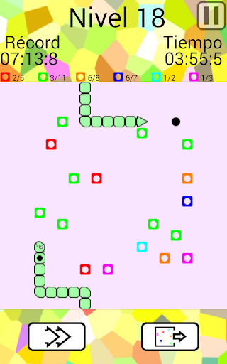 El juego está dividido en dos partes independientes de 20 niveles cada una. En la primera, la serpiente deberá comer las bolas negras que aparezcan y empujar las de color al lugar correspondiente hasta acabar con todas, en la segunda parte además, aparece un monstruo que deberás evitar que te atrape.