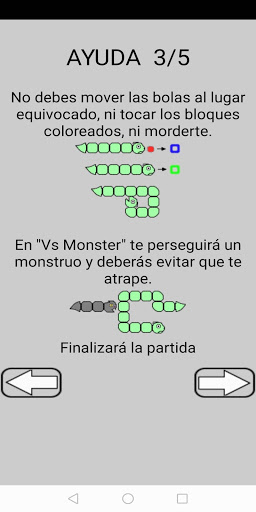 La serpiente crece cuando come una bola negra quedando el monstruo paralizado unos instantes, si la serpiente está empujando una bola de color el monstruo huye.
