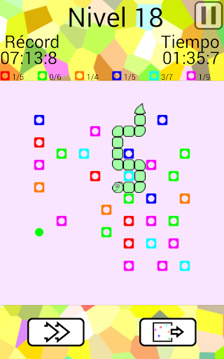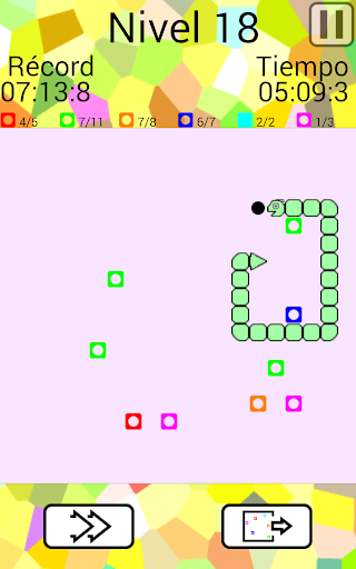 La serpiente se maneja deslizando el dedo sobre la pantalla y puede atravesar los bordes apareciendo por el otro extremo.