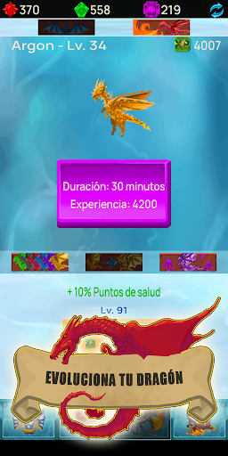 → Envía a tu dragón a cazar para mejorar sus habilidades y alcanzar el siguiente nivel de evolución.
