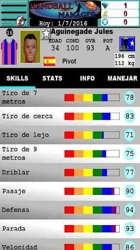 7 habilidades especiales para los jugadores (francotirador, especialista de los 9 metros, jefe del campo, ancla defensiva, portero tenaz,closer,defensa encarnizado)