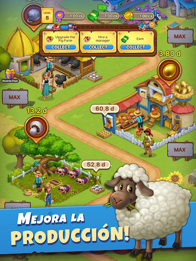 - Contrata gerentes para automatizar las granjas y ganar más dinero mientras no juegues.
