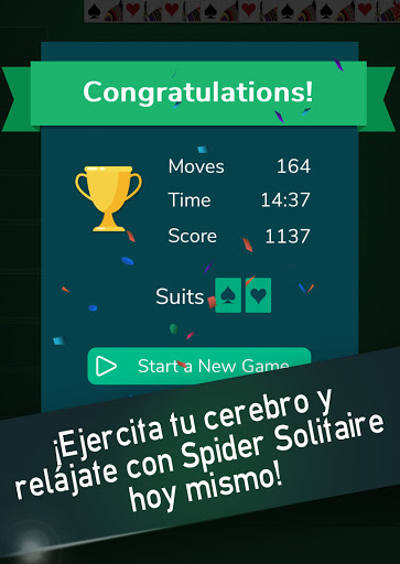 ¡Instala Spider Solitaire de Arkadium hoy mismo! ¡Relájate y disfruta del solitario clásico gratis, donde y cuando quieras! ¡Spider Solitaire de Arkadium presenta una nueva vista horizontal, con cartas más grandes y una experiencia mejorada! Planifica tus movimientos con antelación y pon a prueba tus capacidades lógicas. El solitario es un buen ejercicio mental y de relajación.