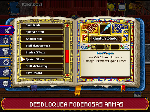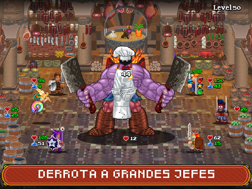 ¡Vuestro juego de mazmorras favorito está de vuelta! El Señor Oscuro ha encerrado toda clase de objetos legendarios, botín y demás en su castillo, tras una aparentemente infinita horda de monstruos, trampas y triquiñuelas. ¿Desalentador? Para ti no, tú estarás a salvo en la taberna contratando adictos a la soda para que hagan el trabajo sucio por ti. Usa el botín que traen de vuelta para mejorar tu taberna, pueblo y armería para atraer a aventureros más fuertes, y luego repite el proceso. Construye tu pueblo, crea un poderoso equipo y a ver si puedes superar la mazmorra e ir a la siguiente dimensión y más allá.