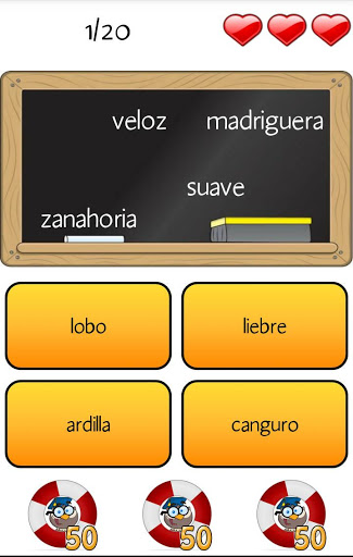 Tendrás la ayuda de los comodines de nuestro amigo el Búho, el comodín permite eliminar dos respuestas de las cuatro que tenemos. Tienes 3 vidas para descubrir todas las palabras secretas y poder desbloquear los siguientes niveles.
