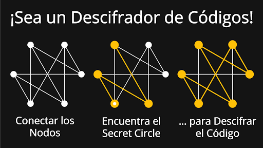 Principio del juego: Conecta los nodos para que formen un camino cerrado. Este es el llamado Secret Circle (conocido en los círculos especializados como el "Círculo de Hamilton"). Has descifrado el código y recibirás tu recompensa en forma de Circle Coins. Puede usarlos para comprar códigos más difíciles y cosas muy interesantes. Sus éxitos también se presentan en estadísticas atractivas.