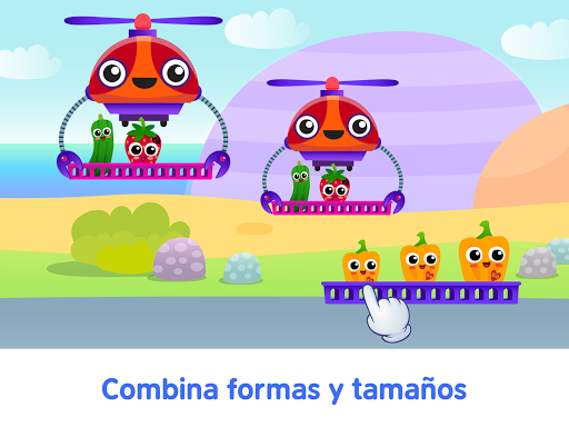 ¡“Hola, helicópteros”! Haga coincidir los alimentos con el helicóptero del tamaño correcto con nuestros juegos bebes gratis.
